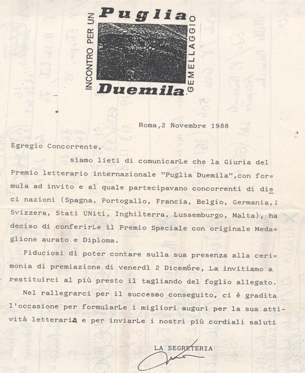 Premio letterario Internazionale di poesia "PUGLIA DUEMILA"